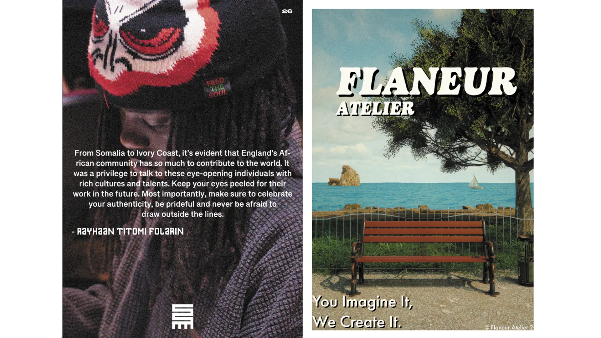 The Bedroom Project, a podcast/page dedicated to sharing modern and black culture, created a print magazine, for which advertising space was opened up. I made a quick print advert for Flaneur Atelier in 3D using Blender, and got it printed in the magazine.