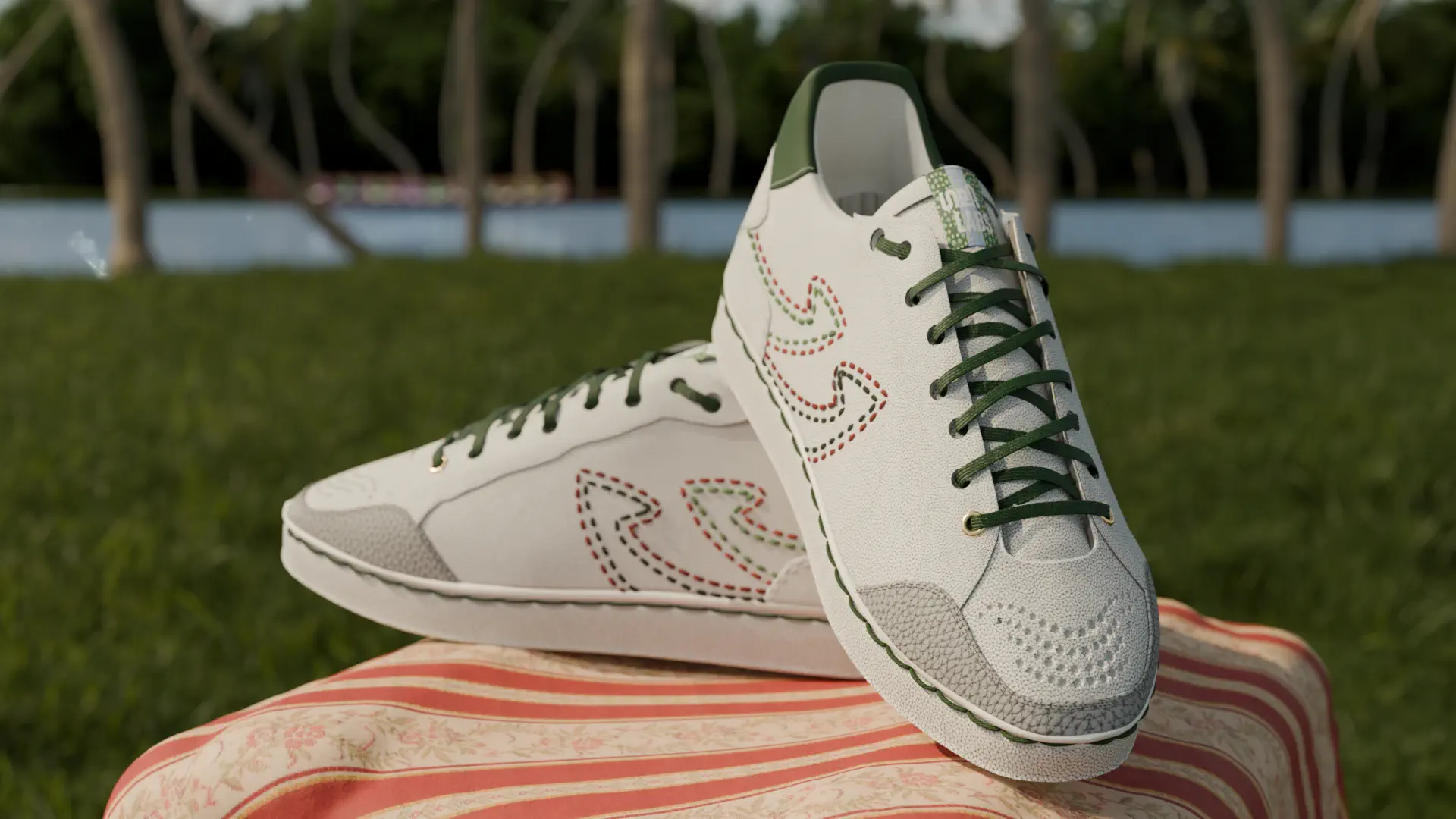 The Gully Labs Naadu Sneakers were designed with my home state, Kerala, in mind. This in turn inspired me to model the shoe from scratch and create a quick render also inspired by Kerala's lushious landscapes and rich culture. The entire project was done in Blender.